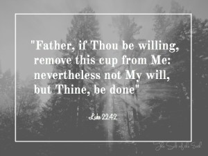 Работа искупления началась в Гефсиманский сад, когда Иисус’ душа была печальна. Иисус помолился Отцу и сказал:: “Отец, Если ты хочешь,, Вынь из меня эту чашку: тем не менее, не Моя воля, но Твоя, Это будет сделано”.