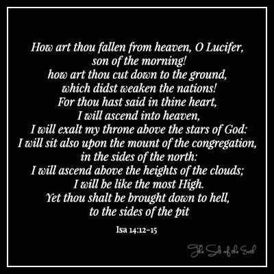 Люцифер и его ангелы пали со своего положения на небесах, были низвергнуты на землю и стали противниками Бога. У них не было владычества на небесах, ни на земле (Левый 28:12-17, Это 14:12-16)