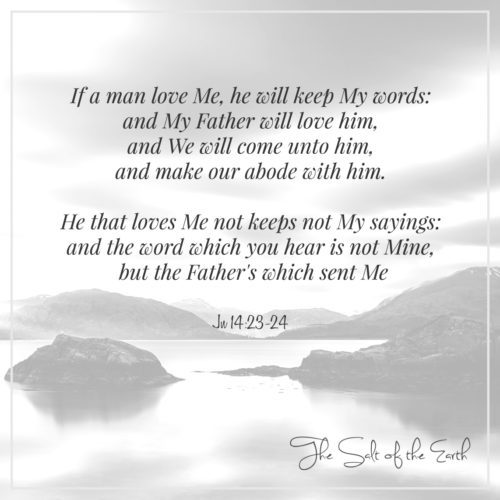 Иисус ответил и сказал ему, Если мужчина любит Меня, он сдержит Мои слова: и Мой Отец будет любить его, и мы придем к нему, и сотворим с ним обитель. Кто любит Меня, тот не соблюдает слов Моих: и слово, которое вы слышите, не Мое, but the Father’s which sent me (Джон 14:23-24)